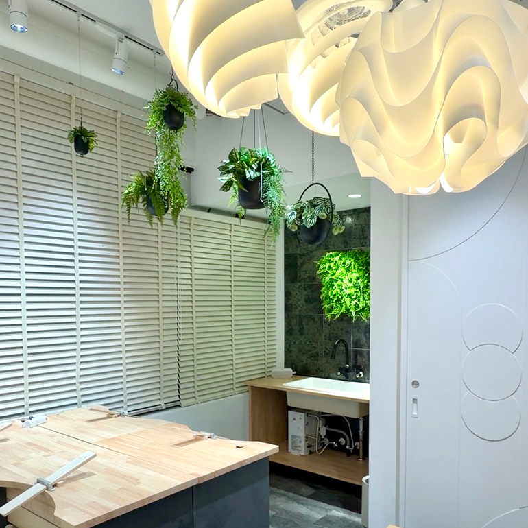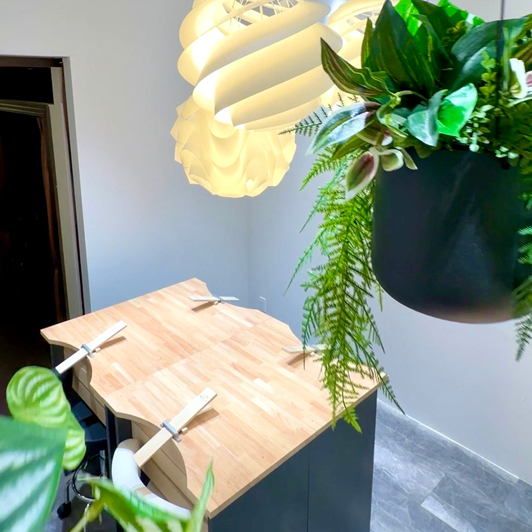 おふたりだけの特別な時間を誰にも邪魔されずに過ごし、世界に一つだけの結婚指輪を手作りできる空間です。おふたりのペースで、心ゆくまで指輪づくりに没頭できるのが最大の魅力。この専用スペースは3時間貸切りができ、なんと指輪は3時間で完成し、作ったその日に持ち帰るとこができます。空間を独占できるため、動画撮影もゆっくり自由に楽しめ、思い出を余すことなく記録できます。また、お好きな音楽をBGMに、リラックスしたムードで製作可能。飲食持ち込みOKで喉を潤すドリンクサービス付きです。ご家族連れも安心で、赤ちゃんやお子様のための個室も完備。さらに、ご友人やご家族と最大8名様まで一緒に彫金でき、特別な記念日を皆で分かち合えます。お煙草を吸われる方のために喫煙スペースも確保されており製作の合間に屋上に出て休憩することも可能です。